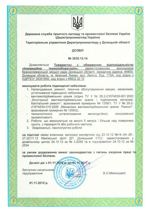 - 2009-2016г. ПАО “Харцизский трубный завод” – предупредительно плановые ремонты механической, гиравлической и электрической частей технологического оборудования.